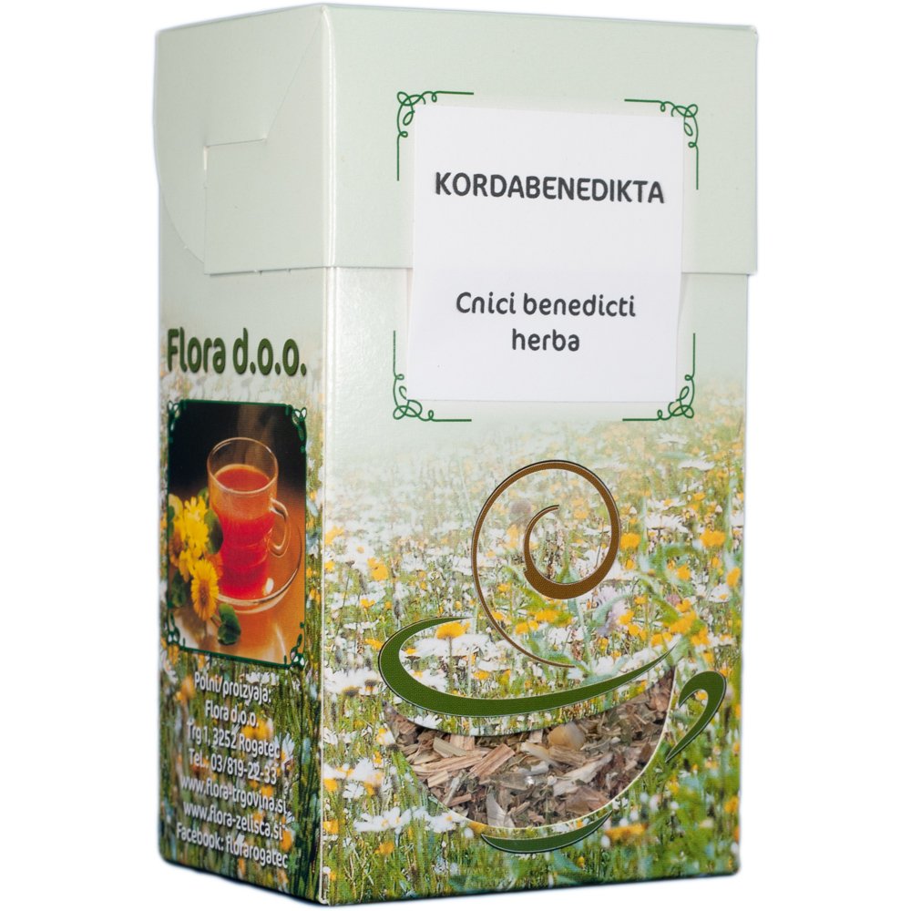 Kordabenedikta je 30 do 50 cm visoko, enoletno zelišče. Njeno pokončno steblo je močno razraslo, v spodnjem delu bodičasto. Listi so dokaj lepljivi in porasli z dolgimi dlačicami, njihov rob pa je ostro narezan in bodičast. Na koncu stebla se razvijejo rumenkasti cvetovi. Rastlina vsebuje grenčine, eterično olje in čreslovine.