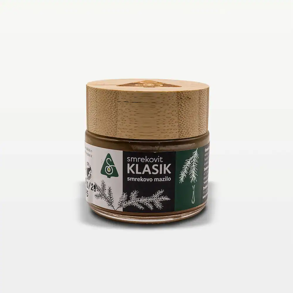 Smrekovo mazilo Smrekovit Klasik izdelujejo že od leta 1990. Smrekovo mazilo Smrekovit Klasik je popolnoma naravno mazilo na maščobni osnovi. 100% sestavin je naravnih, 75% iz ekološkega kmetijstva. Izdelek ima BIO certifikat. Glavna sestavina je smrekova smola. Mnogi učinki smole iglavcev so dobro poznani po vsem svetu in jih že od leta 1990 potrjujejo izkušnje naših številnih uporabnikov. Smola namreč kožo neguje površinsko in globinsko, krepi njen obrambni mehanizem ter spodbuja njeno delovanje in prekrvavitev.