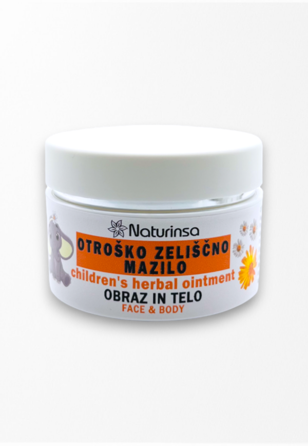 Otroško zeliščno mazilo je naravni izdelek za nego otroške kože. Je varno in nežno za občutljivo otroško kožo ter lahko pomaga pri pomirjanju in lajšanju številnih kožnih sprememb, vključno z izpuščajem zaradi plenic in ekcemov. Ne vsebuje škodljivih substanc in se hitro vpije, koža pa je mehka, gladka in navlažena.